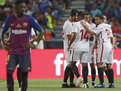 Por su parte, el Sevilla parace que naufraga en un mercado de fichajes que no acaba de serle propicio. El Sevilla ayer plantó cara, eso es innegable, pero el estilo y lo que se leyó en el campo es muy preocupante para los de Machín. Un juego demasiado vertical, un centro del campo con demasiada gente y en el que al final Roque Mesa fue el único que hizo algo de relumbrón. Banega ahogado entre tanta gente... Sarabia hizo el gol pero estuvo impreciso y Muriel, simplemente no creo que tenga nivel para jugar en el Sevilla. Los cambios aportaron poquito por no decir nada. Aleix Vidal no aporta nada que no aporte Sarabia, André Silva tiene que crecer mucho todavía y Ben Yedder...